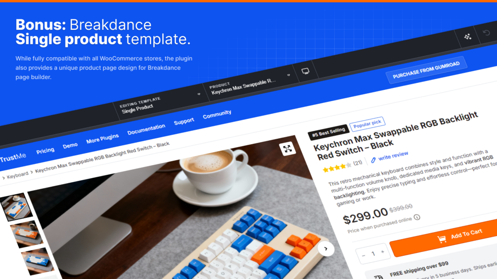 ✅ Bonus: Breakdance single product page template (woo gallery plugin for breakdance not included)
